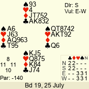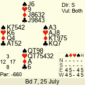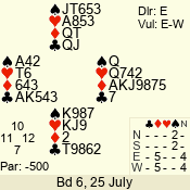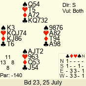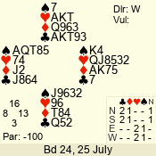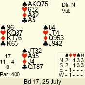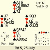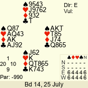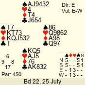 | 3 NT | E | +1 | -430 | 2 | 04 - 04 | 1 | 4 |