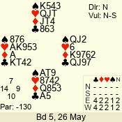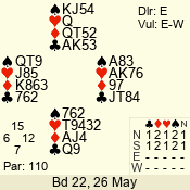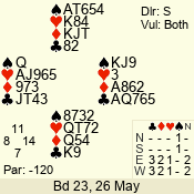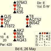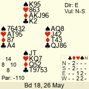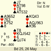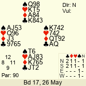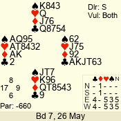 | 3 NT | W | +2 | -660 | 3 | 05 - 01 | 5 | 5 |