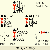 | 3 NT | W | +2 | -660 | 3 | 04 - 04 | 1 | 4 |