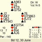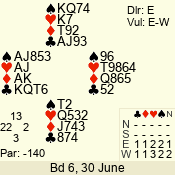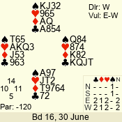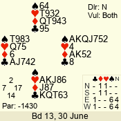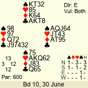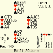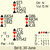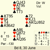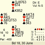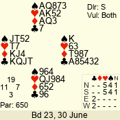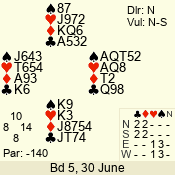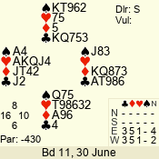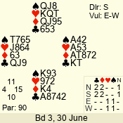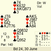 | 3 NT | S | +1 | 430 | 2 | 03 - 06 | 6 | 3 |