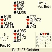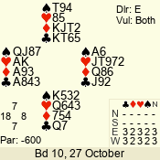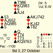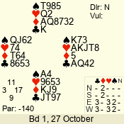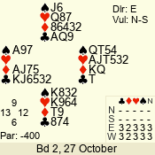 | 3 NT | E | +1 | -430 | 2 | 02 - 03 | 6 | 2 |