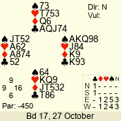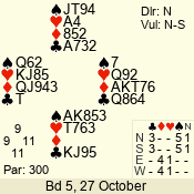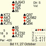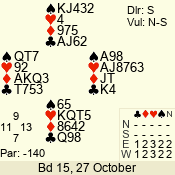| 3 NT | S | +1 | 430 | 3 | 05 - 05 | 1 | 5 |