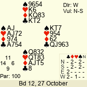 | 3 NT | W | +1 | -630 | 2 | 03 - 03 | 1 | 3 |