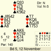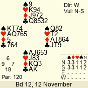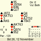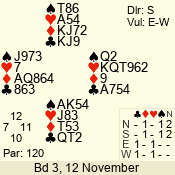 | Con | Dc | Res | Score | Ld | Pairs | Rd | Tbl | | ** | | -120 | | 06 - 04 | 3 | 6 |