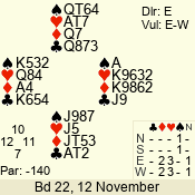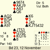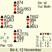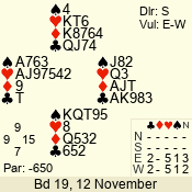 | Con | Dc | Res | Score | Ld | Pairs | Rd | Tbl | | ** | | 430 | | 04 - 01 | 4 | 4 |