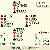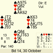 | Con | Dc | Res | Score | Ld | Pairs | Rd | Tbl | | ** | | 420 | | 01 - 02 | 5 | 1 |