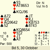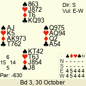 | Con | Dc | Res | Score | Ld | Pairs | Rd | Tbl | | ** | | 430 | | 02 - 03 | 5 | 2 |