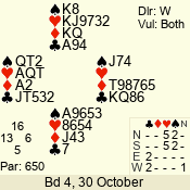 | Con | Dc | Res | Score | Ld | Pairs | Rd | Tbl | | ** | | 500 | | 01 - 03 | 4 | 1 |
