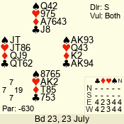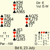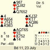 | 3 NT | E | +2 | -460 | J | 09 - 06 | 6 | 1 |