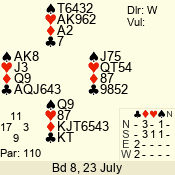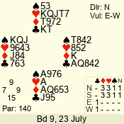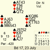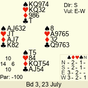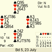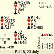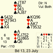 | 3 NT | E | +1 | -430 | J | 08 - 01 | 3 | 5 |