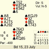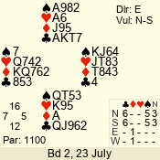| 3 NT | E | +1 | -430 | J | 07 - 01 | 6 | 2 |