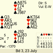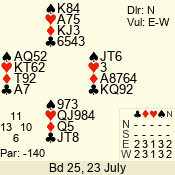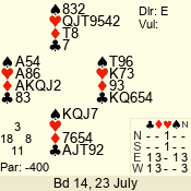 Thursday: July Open Pairs (2015) 23 July