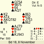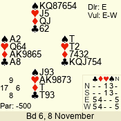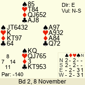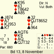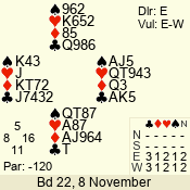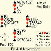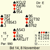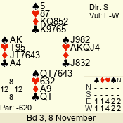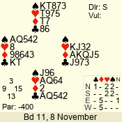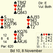 | 3 NT | E | +1 | -430 | 3 | 08 - 06 | 3 | 8 |