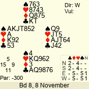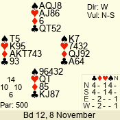 | 3 NT | W | +1 | -630 | 8 | 08 - 01 | 8 | 8 |