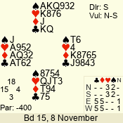 | 3 NT | W | +1 | -630 | K | 06 - 07 | 10 | 6 |