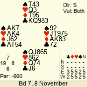 | 3 NT | W | +2 | -660 | Q | 02 - 10 | 3 | 2 |