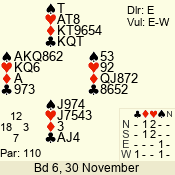 | 3 NT | E | +1 | -430 | 8 | 04 - 07 | 8 | 4 |