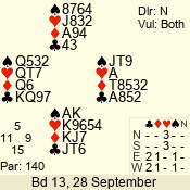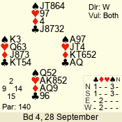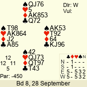 | 3 NT | N | +1 | 430 | Q | 04 - 03 | 2 | 4 |