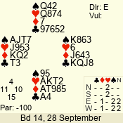 | 3 NT | S | -2 | -200 | 6 | 02 - 01 | 2 | 2 |