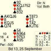 | Con | Dc | Res | Score | Ld | Pairs | Rd | Tbl | | ** | | 450 | | 03 - 04 | 5 | 3 |