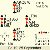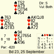 | Con | Dc | Res | Score | Ld | Pairs | Rd | Tbl | | ** | | -620 | | 01 - 02 | 5 | 1 |