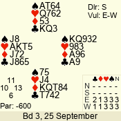 | Con | Dc | Res | Score | Ld | Pairs | Rd | Tbl | | ** | | 450 | | 03 - 05 | 4 | 3 |