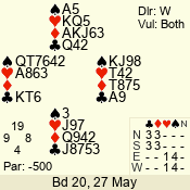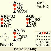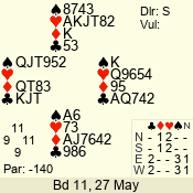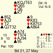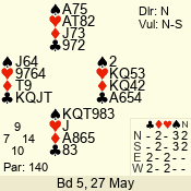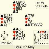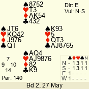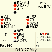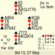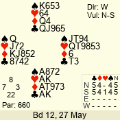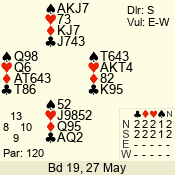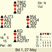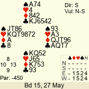 | 3 NT | S | +1 | 430 | 7 | 05 - 07 | 6 | 5 |