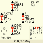| 3 NT | W | +1 | -430 | 3 | 04 - 02 | 3 | 4 |