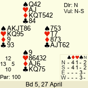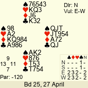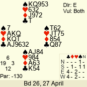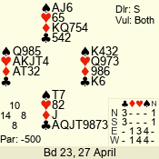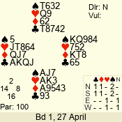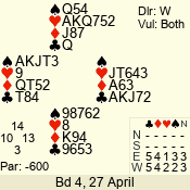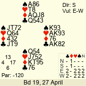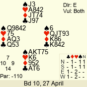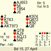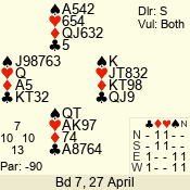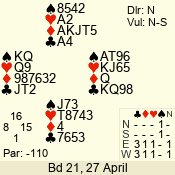 | 3 NT | W | +1 | -630 | 3 | 07 - 04 | 4 | 7 |