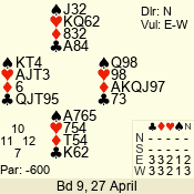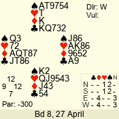 | 3 NT | S | -3 | -300 | 2 | 04 - 06 | 6 | 4 |