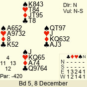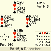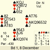 | 3 NT | E | +1 | -430 | 2 | 01 - 03 | 3 | 1 |