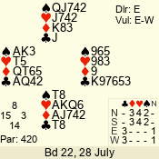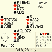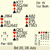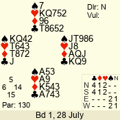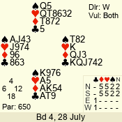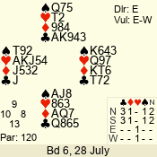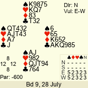 | 3 NT | E | +1 | -630 | 9 | 07 - 04 | 4 | 7 |