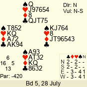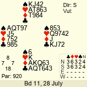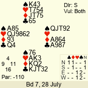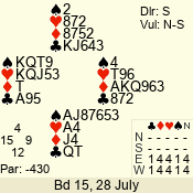 | 3 NT | S | +1 | 430 | 7 | 04 - 04 | 1 | 4 |