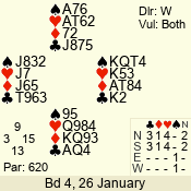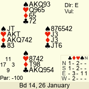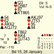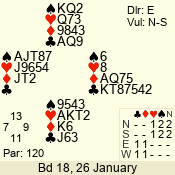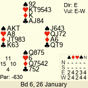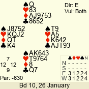 | 3 NT | E | +1 | -630 | 6 | 04 - 01 | 4 | 4 |