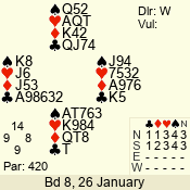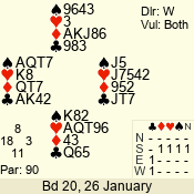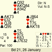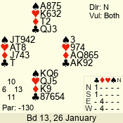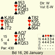 | 3 NT | W | +1 | -630 | Q | 05 - 03 | 3 | 5 |