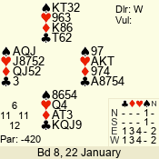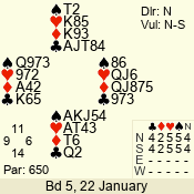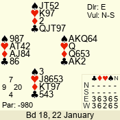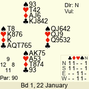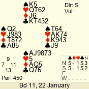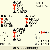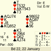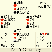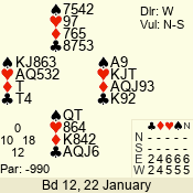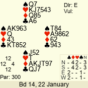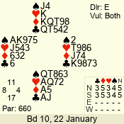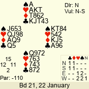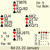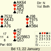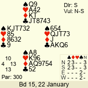 | 3 NT | S | +1 | 630 | 3 | 02 - 02 | 1 | 2 |