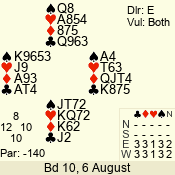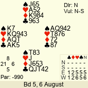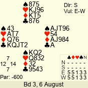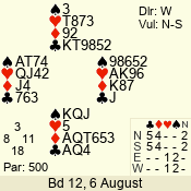 Monday: August Open Pairs (2012) 6 August