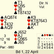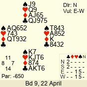 | 3 NT | S | +2 | 660 | 9 | 01 - 02 | 4 | 1 |