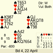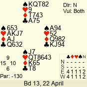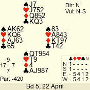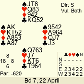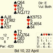| Con | Dc | Res | Score | Ld | Pairs | Rd | Tbl | 4  | S | = | 420 | A | 03 - 03 | 1 | 3 |