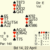 | Con | Dc | Res | Score | Ld | Pairs | Rd | Tbl | 4  | E | -2 | 200 | A | 04 - 04 | 1 | 4 |