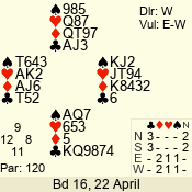 | Con | Dc | Res | Score | Ld | Pairs | Rd | Tbl | | 2 NT | W | -3 | 150 | 3 | 04 - 02 | 3 | 4 |