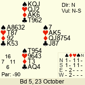 | Con | Dc | Res | Score | Ld | Pairs | Rd | Tbl | 5  | S | = | 400 | T | 02 - 02 | 1 | 2 |