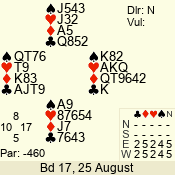 | Con | Dc | Res | Score | Ld | Pairs | Rd | Tbl | | 3 N | S | +2 | 460 | | 03 - 01 | 3 | 3 |