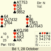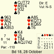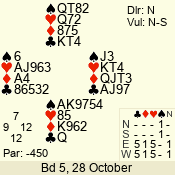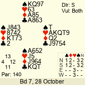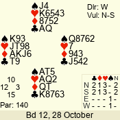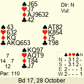 | 3 NT | S | +1 | 630 | A | 05 - 02 | 4 | 5 |