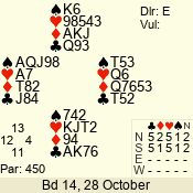 | Con | Dc | Res | Score | Ld | Pairs | Rd | Tbl | 4  | S | +1 | 450 | A | 05 - 02 | 4 | 5 |