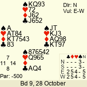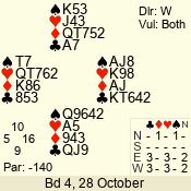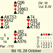 | 3 NT | W | +2 | -460 | 9 | 01 - 04 | 4 | 1 |