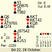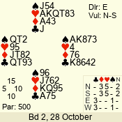| 3 NT | W | +2 | -460 | J | 02 - 06 | 3 | 2 |
