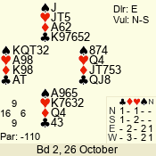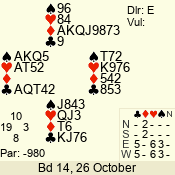 | 3 NT | E | +2 | -460 | 8 | 05 - 02 | 4 | 5 |