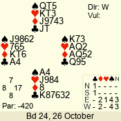 | 3 NT | W | -1 | 50 | 2 | 08 - 08 | 1 | 8 |