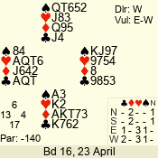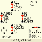 Tuesday: Jeanie Renouf Pairs (2013) 23 April